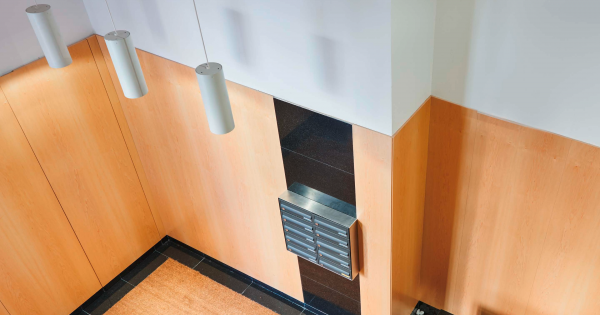 Imágenes realizadas por Eugeni Pons. Se desarrolla un programa residencial en bloque donde se exigía un máximo aprovechamiento del solar de reducidas dimensiones pero con una estratégica situación formando chaflán. Una volumetría fuerte y rotunda protagonizada por la esquina que se retranquea para enfatizar el acceso principal, cede el protagonismo al espacio público. Un hueco rasgado vertical, que permite luz y ventilación a la escalera, acomoda la entrega de los volúmenes y macla los usos de vivienda que apoyan en ambas calles. Las terrazas corridas de fachada, unifican huecos y maximizan la entrada de luz natural. Forradas interiormente con paneles fenólicos color madera, que dan profundidad y calidez espacial a las estancias interiores, cuya privacidad queda garantizada con las celosías de lamas correderas que aportan dinamismo al alzado.