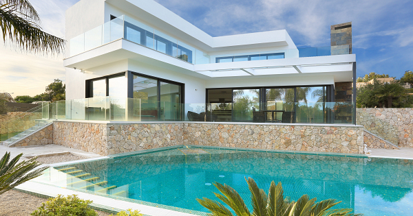 Andreas Hummel completó esta obra de vivienda en forma de L en 2014. La villa se encuentra en la costa oeste de la isla de Mallorca, en la bahía de Santa Ponsa. El solar sobre el que se edifica cuenta con 1.148 m2. El acceso al solar se produce desde la parte alta, salvando este desnivel adaptando la vivienda al terreno natural en niveles hasta llegar a la piscina y mirando siempre hacia el mar. El objetivo de este proyecto desde el principio se concibe como una vivienda de vacaciones de estilo vanguardista con un valor estético potente y dando gran importancia a la piscina como espacio protagonista en el exterior. La vivienda está formada por un volumen principal en planta baja con otro volumen sobre ella en planta piso que se retranquea unos metros para dejar espacio a terrazas. La casa, en forma de L, se abre con enormes ventanales que cubren toda la fachada para disfrutar de las vistas, cerrándose en el resto de fachadas para dar privacidad. El programa de proyecto se divide en dos plantas, con una superficie construida total de 350 m2. En planta baja se sitúa un espacio diáfano que comprende salón, comedor y cocina, dejando a la vista la escalera que sube al piso superior. También se sitúan en planta baja el dormitorio principal con baño en suite y despacho. En planta piso, se encuentran dos dormitorios más, con vestidor y baño en suite. Estos dormitorios, al igual que el dormitorio y salón de planta baja, cuentan con salida a amplias terrazas desde las que disfrutar las vistas a la bahía. También los baños se diseñan como espacios privados pero que deben de gozar de luz natural y vistas, por lo que se proyectan como espacios abiertos que conectan con el exterior también mediante ventanales. Estas enormes ventanas y el pavimento de baldosa de piedra tanto en el interior como en el exterior de la casa, consiguen al estar abiertos una sensación de fundición en un único espacio del interior con el exterior. Desde las terrazas de planta piso se desciende a cota del terreno a la piscina, espacio protagonista del jardín. En el jardín se realiza un proyecto paisajístico mezclando vegetación autóctona con vegetación asiática. El uso de materiales en la vivienda mezcla lo tradicional y lo moderno, utilizando en la vivienda un sistema constructivo con bloque YTONG acabado en revoco y en exteriores muros de piedra natural local. Este sistema constructivo dota de un buen aislamiento a la vivienda, que acompañado de estudios de soleamiento, brisoleis, pérgolas y ventilaciones cruzadas hacen que requiera de un consumo energético reducido.