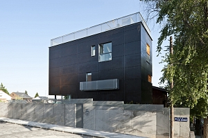 Edificio que combina los usos de vivienda unifamiliar y oficina. La franja edificable de 4.75m x 13m define las medidas del cuerpo y nos lleva a desarrollar un sistema de fachada ventilada que ocupa sólo 18cm. Construido en 2.009, el edificio se encuentra en el barrio madrileño de Peñagrande.