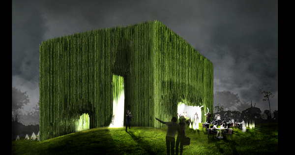 Cliente: FUNDECOR Costa Rica Concepto proyectual El proyecto se genera a partir de dos acciones básicas: en primer lugar, la extrusión de un elemento cúbico de bambú de (20x20x20) que emerge del terreno mimetizándose con el entorno, una porción de naturaleza que albergará el programa propuesto. En segundo lugar, se practica un vaciado en el cubo existente a partir de un tubo que genera un vacio habitable en su interior, recorriéndolo en distintas direcciones y horadando en el cubo de bambú el volumen requerido para cada espacio. Distribución del programa El proyecto, que se adapta a la topografía del terreno, se distribuye en dos plantas, a excepción de la zona de dormitorios, que se optado por ubicarlo en una cota inferior, otorgándoles de esta manera una mayor independencia y salida directa al exterior. Los espacios más públicos del proyecto están ubicados en la cota de acceso, evitando de esta manera cruces de circulaciones innecesarios. Así mismo, el auditorio dispone de un acceso independiente al resto de edificio, de manera que cuando las oficinas están cerradas se pueden realizar diferentes acontecimientos en este espacio sin que el resto del edificio este en funcionamiento, logrando un ahorro energético importante. La zona de descanso se encuentra en la planta de las oficinas, y con acceso directo desde los dormitorios, de manera que puede utilizarse tanto durante el tiempo de trabajo como en el de descanso. La orientación del edificio esta estudiada de manera que las zonas más públicas del proyecto tengan vistas hacia el bosque, mientras que las áreas de trabajo e investigación se orientan hacia el norte para obtener una luz difusa óptima en su interior. Esculpiendo el vacío: la iluminación natural Se ha estudiado la geometría del hueco que atraviesa el edificio para optimizar al máximo la entrada de luz natural durante todo el año, generándose a partir de tres ejes: el primero, que entra a través de la cubierta, y está orientado al sur para introducir la máxima cantidad de luz en el edificio. El segundo, que atraviesa el edificio horizontalmente, penetra en el cubo en su cara oeste, penetrando hasta una gran profundidad la luz de la tarde. El tercer eje penetra hasta las cotas inferiores, permitiendo que la luz natural bañe estos espacios. Estudios bioclimáticos Las estrategias consideradas para una minimización del consumo energético y emisiones de CO2 las podemos clasificar en diurnas y nocturnas. Durante el día el agua de recogida de lluvia baña la fachada del edificio, este hecho minimiza la radiación solar y enfría el aire. La ventilación se provoca de manera natural por el cambio térmico entre el exterior y el vacío interior del edificio. Este espacio interior se ha dispuesto de manera que la ventilación abarque todos los espacios. El aire introducido al pasar por la cortina de agua cede calor, bajando la temperatura del aire entre 3ºC y 4ºC, refrigerando de forma natural el interior de los espacios. El agua de recogida se acumula en un gran depósito enterrado, cuyas paredes se han proyectado de hormigón, permitiendo la convección entre el terreno y el agua, cediendo esta su calor al terreno y lista para su recirculación para la fachada y forjados. El agua fría se recircula de manera cíclica hasta la superficie metálica que envuelve los espacios, absorbiendo el calor interior producido por el propio uso humano, y enfriando las estancias. Durante la noche se aprovecha el salto térmico nocturno para ventilar y enfriar las estancias. En la cubierta se ha dispuesto un sistema llamado “cubierta húmeda”, que consiste en 8 cm de agua que durante el día ha ido absorbiendo el calor interior de los espacios inferiores y mientras que durante la noche se cede este calor a la bóveda celeste, enfriando el agua, que queda lista para usarse al día siguiente. Las necesidades de fuentes de calor no son necesarias en este entorno, por esta razón las estrategias tomadas son todas para la refrigeración de los espacios. No obstante, para calentar el agua de las duchas de los dormitorios se ha pensado en una caldera de biomasa. Siguiendo con el mismo espíritu de autosuficiencia energética se ha dispuesto un sistema de producción propia de biomasa. El agua almacenada en el depósito se direcciona hacia un sistema de depuración natural con microfitas en flotación, que tienen una absorción de 180 gN/m2 y producen unas 13 Kg/m2 año de biomasa. Esta agua depurada se podrá reutilizar en inodoros, o dependiendo de las necesidades de la época, en el sistema pasivo de refrigeración. A su vez se utiliza el concepto de Sinestesia para minimizar las sensaciones de calor de los usuarios. El aire limpio, conseguido mediante la ventilación constante, la disminución de la humedad, la minimización de ruidos en los espacios y la utilización de colores fríos en el interior, provoca que el usuario tenga una menor sensación de calor sin modificar la temperatura.