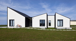 La casa se encuentra en un pequeño núcleo rural disperso a las afueras de Tapia de Casariego. La zona se caracteriza por edificaciones familiares neotradicionales y granjas en una topografía de rasa próxima a la costa libremente expuesta a vientos y soleamiento. La solicitud de los clientes, ambos técnicos en el sector de la construcción, se basaba en un modelo de vivienda que fuese ajustado sin mayores pretensiones a su desarrollo familiar. Debía existir una buena contención de costes y con un proceso constructivo límpio, rápido que permitiese a la vez cierto grado de auto-construcción. La filosofía del proyecto está enfocada hacia un respuesta horizontal concordante con la planeidad del terreno. Se creó una plataforma ligéramente elevada como mecanismo de salubridad sobre la que se levantaron reducidos volúmenes de planta baja. Por impertiavo legal estético del PGOU, la formación de cubiertas debe constar de al menos dos planos inclinados permitiendo un 25% en horizontal como máximo. Se utiliza la obligatoriedad de esta limitación como virtud para reforzar la idea de edificación como pieza individual escultórica enrraizada a su perfil quebrado. La apertura de huecos, las proyecciones hacia el exterior y el acceso están directamente influenciados por la exposición climatológica. La separación de volúmenes facilita una interacción permanente con el exterior desde cualquier estancia o tránsito interior.