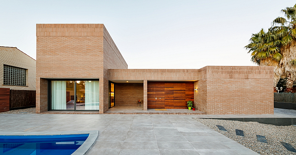 El proyecto plantea el diseño y la construcción de una vivienda unifamiliar suburbana, situada en una parcela de geometría cuadrada de 600 m2. En términos generales, la urbanización en la que se ubica esta casa está formada por parcelas con un considerable tanto por ciento de ocupación y de edificabilidad, disponiendo unas separaciones mínimas a parcelas vecinas no muy generosas. Todo ello deriva en un tejido residencial menos esponjado de lo que inicialmente hubiéramos deseado, y producto de esta circunstancia, se plantea una casa priorizando su propia privacidad respecto a las casas vecinas. Para ello, se proyecta una casa en forma de “U”, colocándola a la mínima distancia permitida por normativa en su lindero oeste, disponiendo en este lateral una fachada de dos plantas y mayoritariamente cerrada, contrarrestando la presencia de la edificación vecina. En el lindero opuesto, a este, la distancia al vecino es más ancha, resultando una fachada de una sola planta en la que se ubican los huecos del programa nocturno de la vivienda. El impacto de la edificación vecina en este lindero es menor que en el lindero opuesto. El lado corto de la "U" funciona como elemento articulador de la entrada y el acceso a la vivienda, así como de los recorridos horizontales en la misma. En esta ala se dispone un porche que vincula directamente el jardín exterior soleado en el que se sitúa una piscina, con el salón interior. Un patio posterior, mayoritariamente umbrío, se sitúa entre ambos lados largos de la "U". Este patio se relaciona íntimamente con la cocina, el salón, así como con el acceso y el recorrido interior de la casa. El espacio destinado a cocina y salón goza de una doble altura, disponiendo de un estudio diáfano en planta primera. Toda la casa se materializa con el mismo ladrillo cerámico de obra vista.