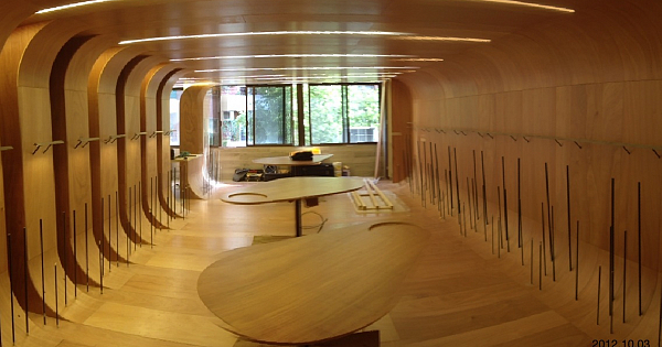 Showroom calzado. Vagón de madera.
